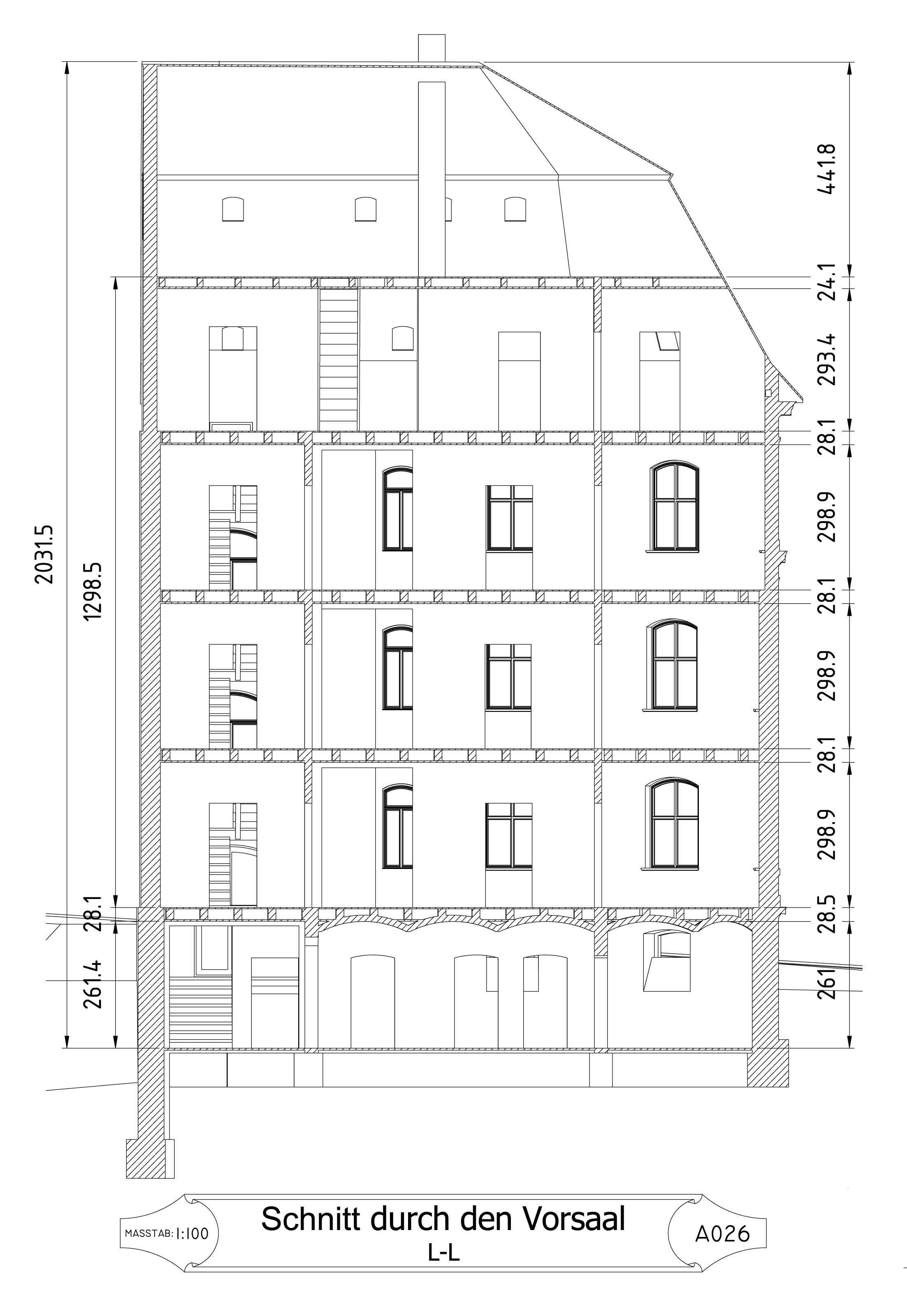 Die Zeichnungen aus den verlorenen Bauakten habe ich selbst rekonstruiert. Um den Zustand des Hauses im Jahr 1894 zu untersuchen, mussten an einigen Stellen Putz oder Tapeten entfernt werden, um die Beschaffenheit der Wände, Fenster und des Mauerwerks zu analysieren. Anschließend habe ich das Gebäude innen vollständig vermessen und mit der Erstellung der Zeichnungen begonnen.