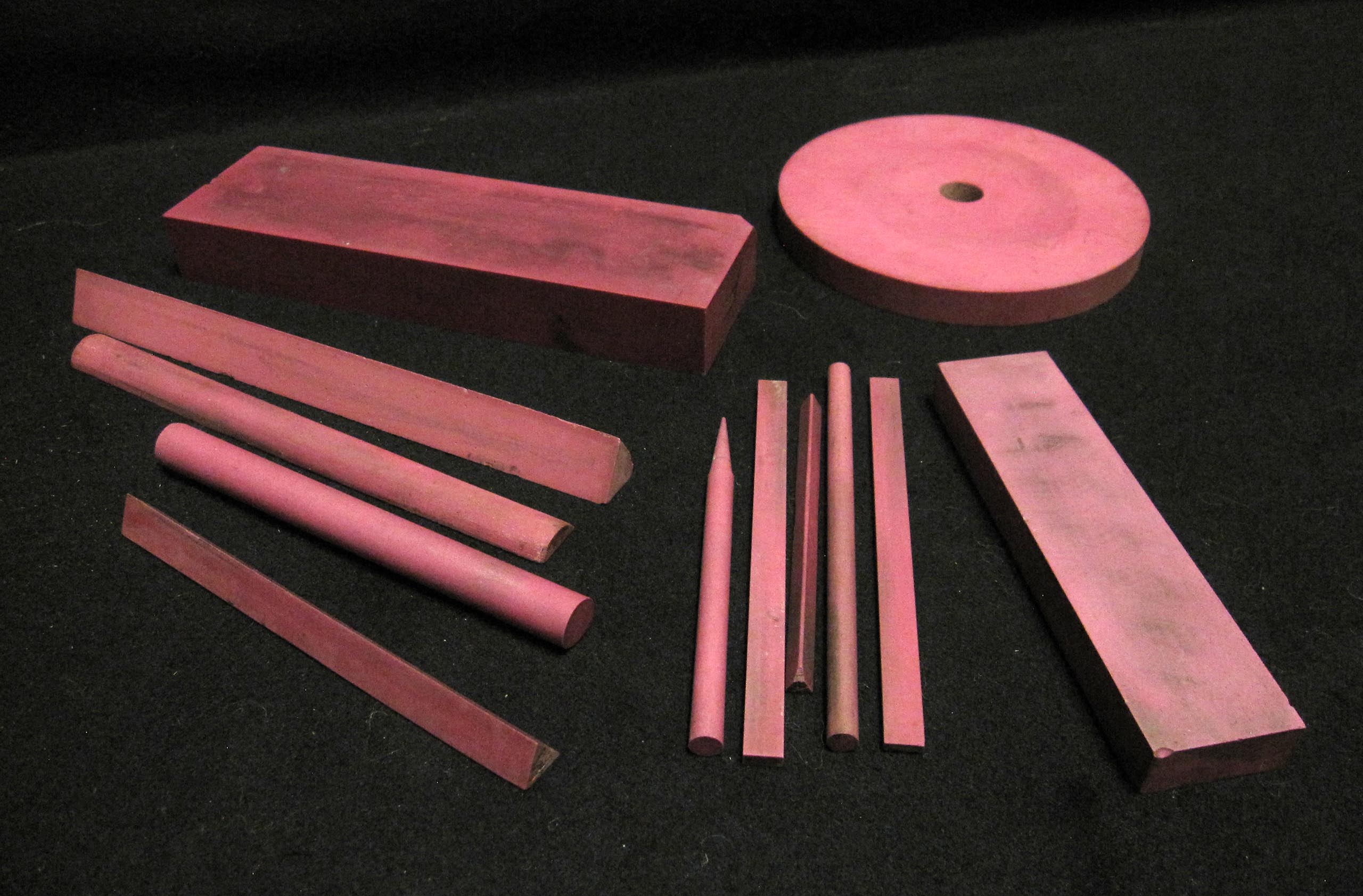 Sinterrubin Degussit in verschiedenen Formen und Größen.