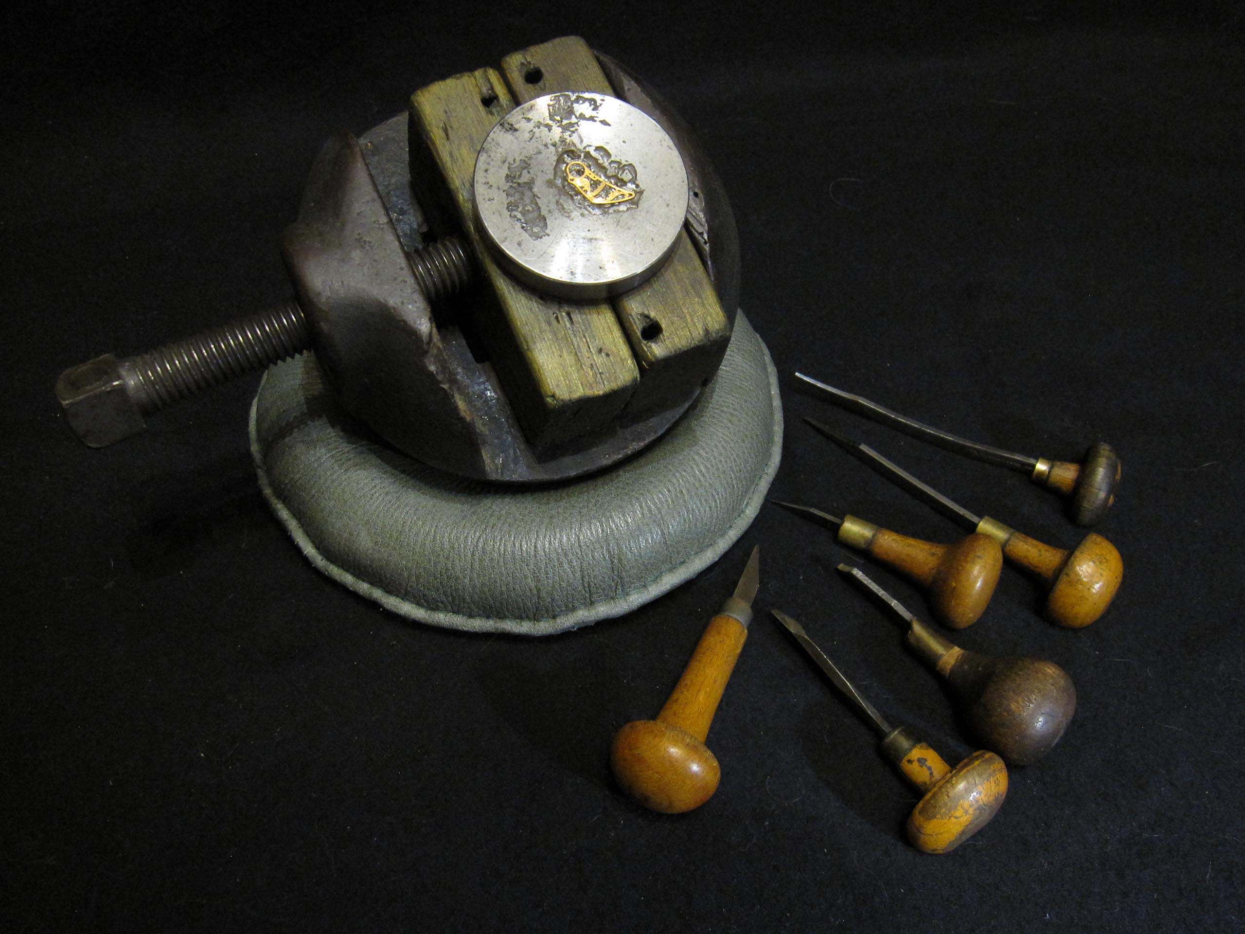 Gravierwerkzeuge wie Gravierstichel und Gravierkugel.