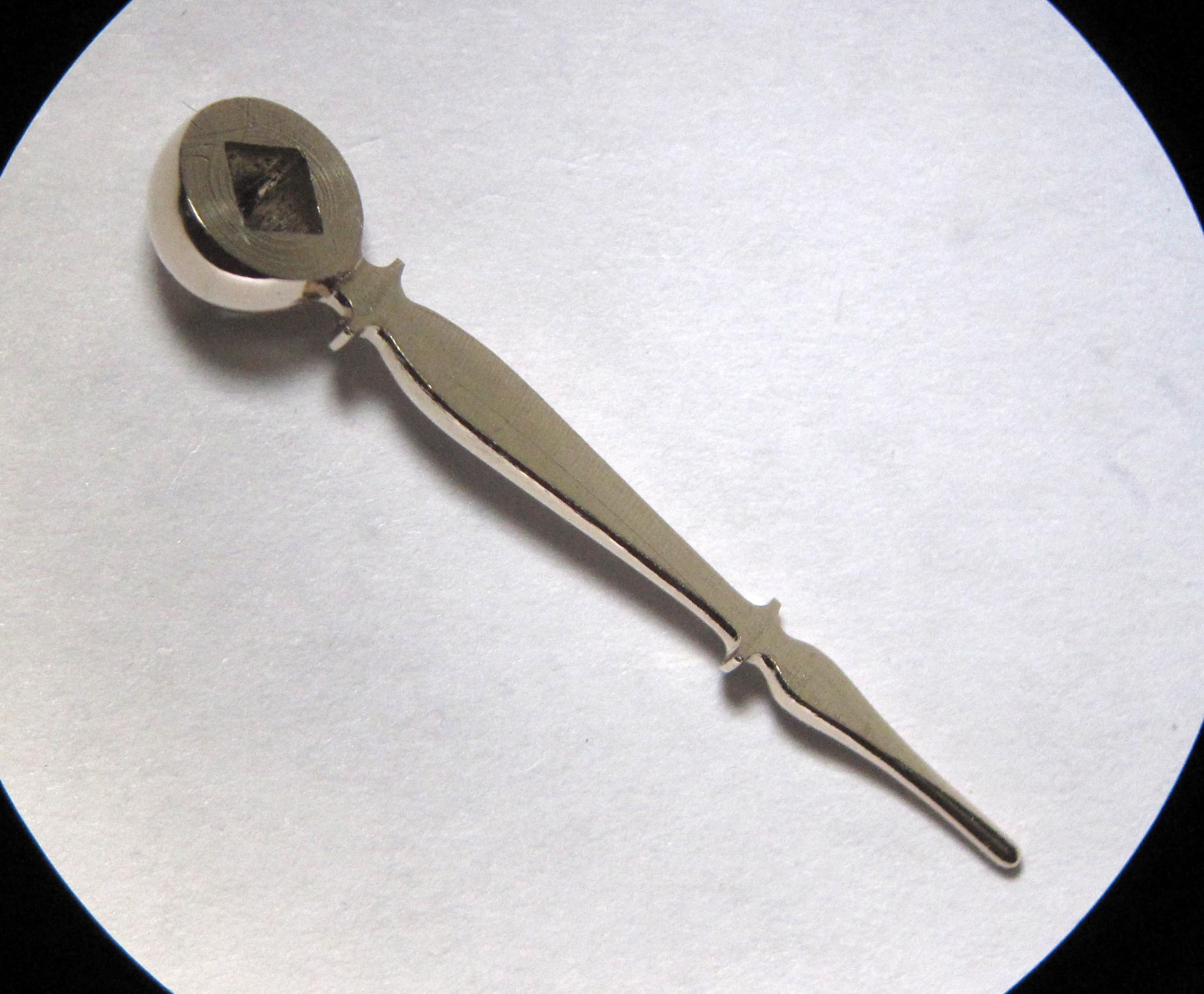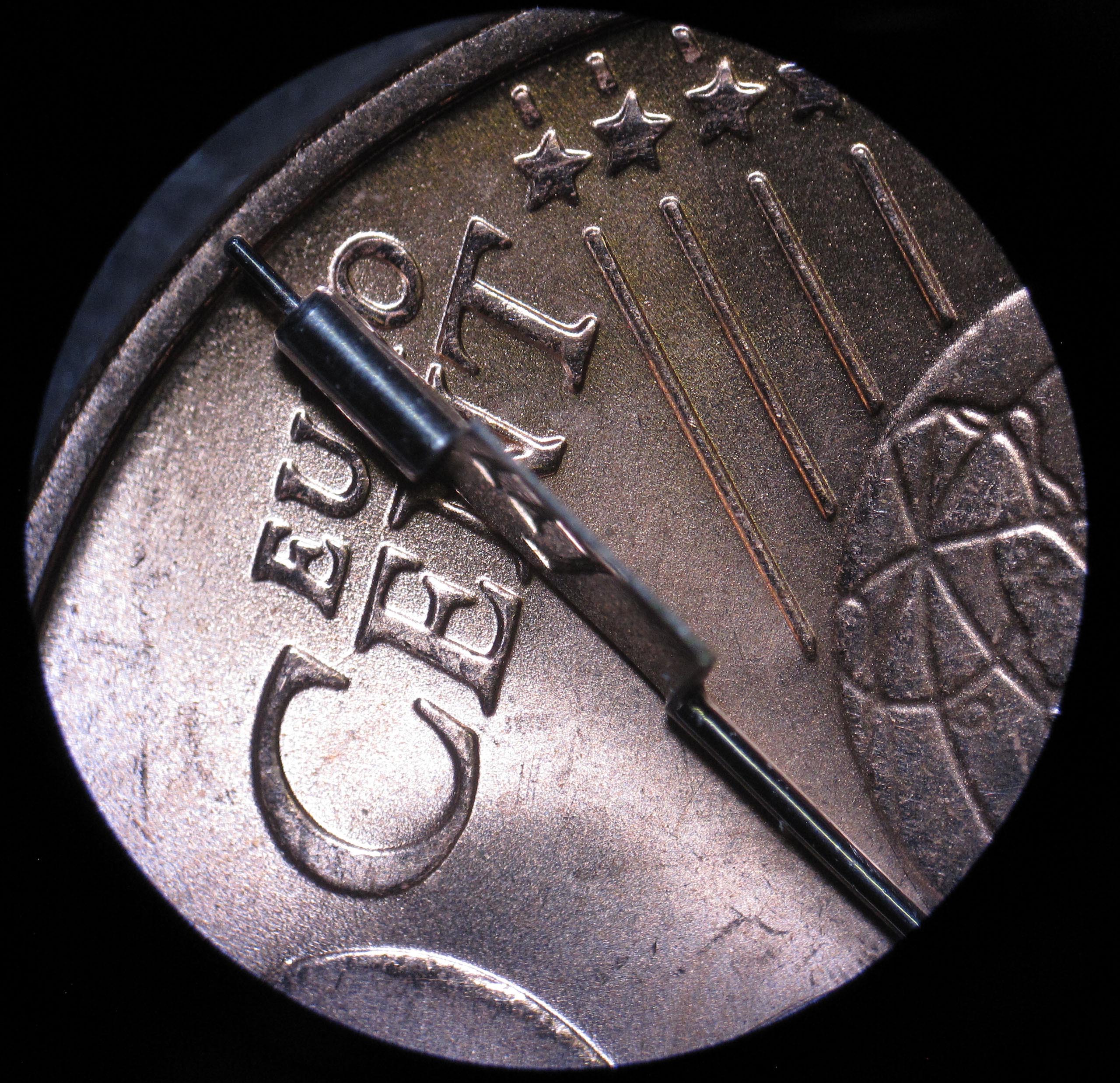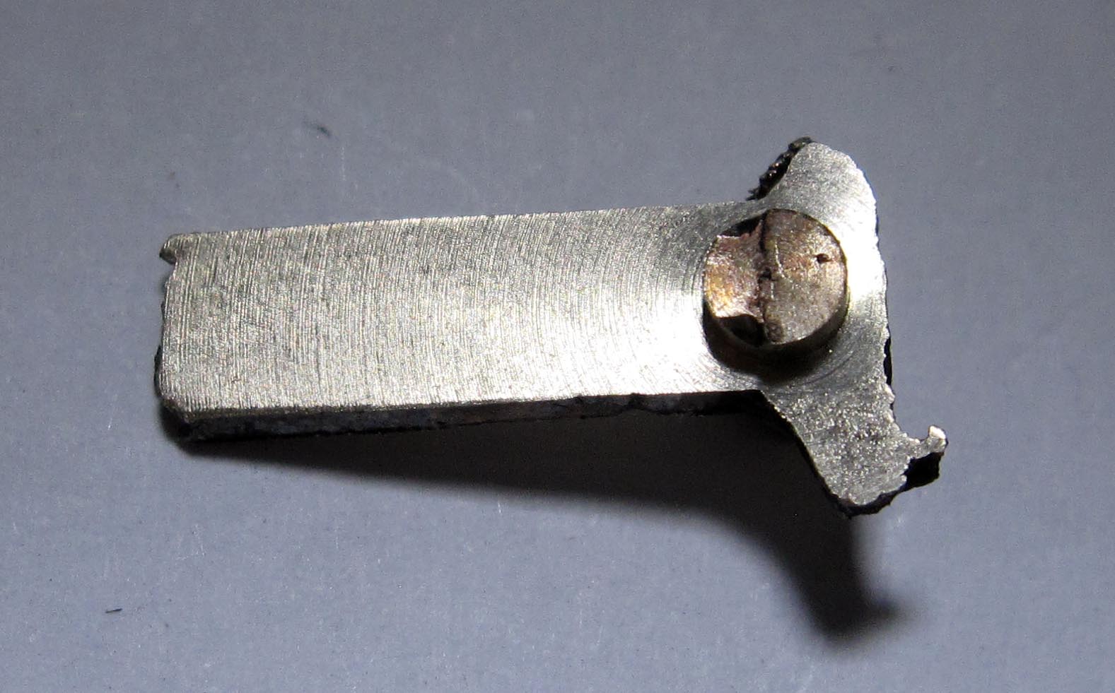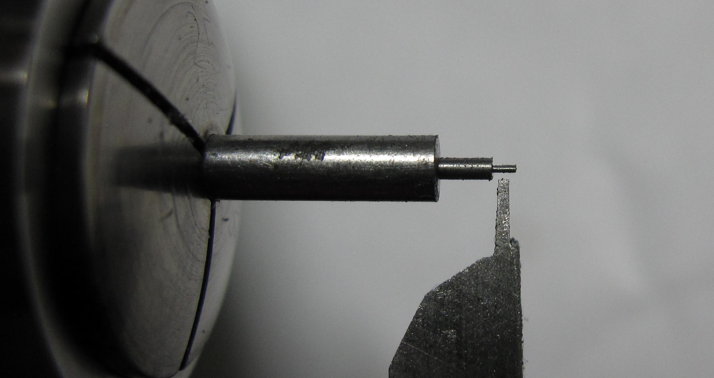 The click appeared to be heavily worn, so I made a new one. In the photograph, the wear is visible, as well as the broken pin with a diameter of approximately 0.55 mm and a length of about 0.85 mm.