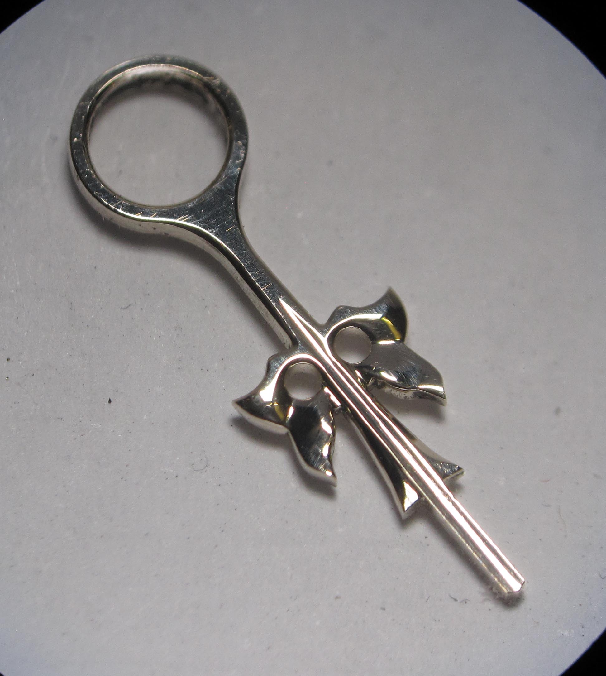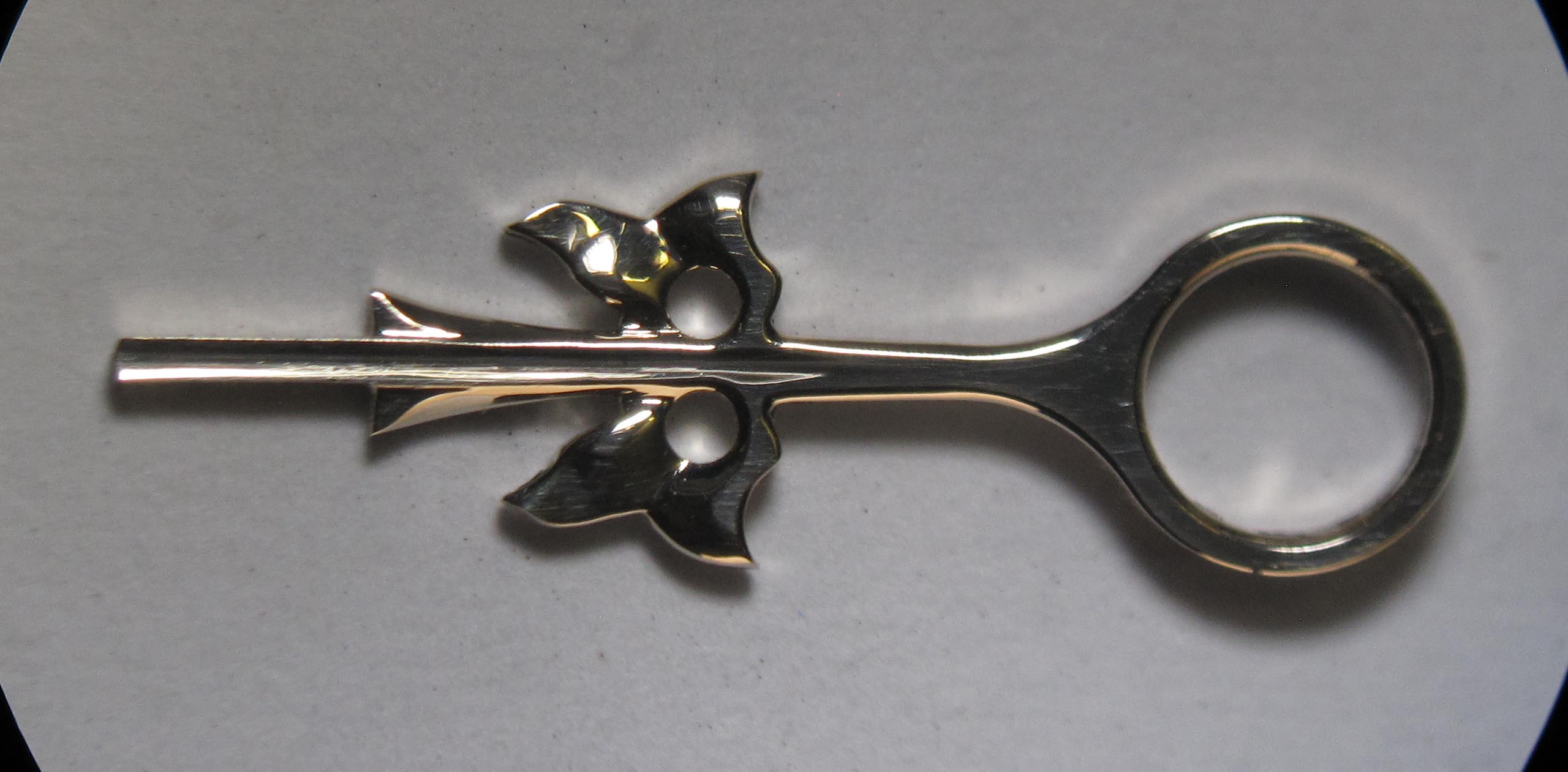 Using needle files and a jeweler’s saw, I shaped the outlines of the leaves and drilled a hole Ø 3.2 mm.