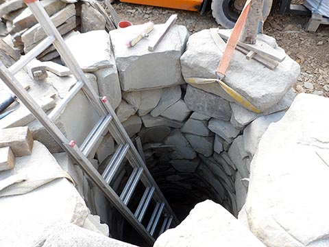 Камень c места юрты Иштвана для стены в колодце. В колодце уложены 5 камней базальта, привезённые в Грайц из леса рядом с домом Иштвана в Szentbékkállá, где стояла его юрта.