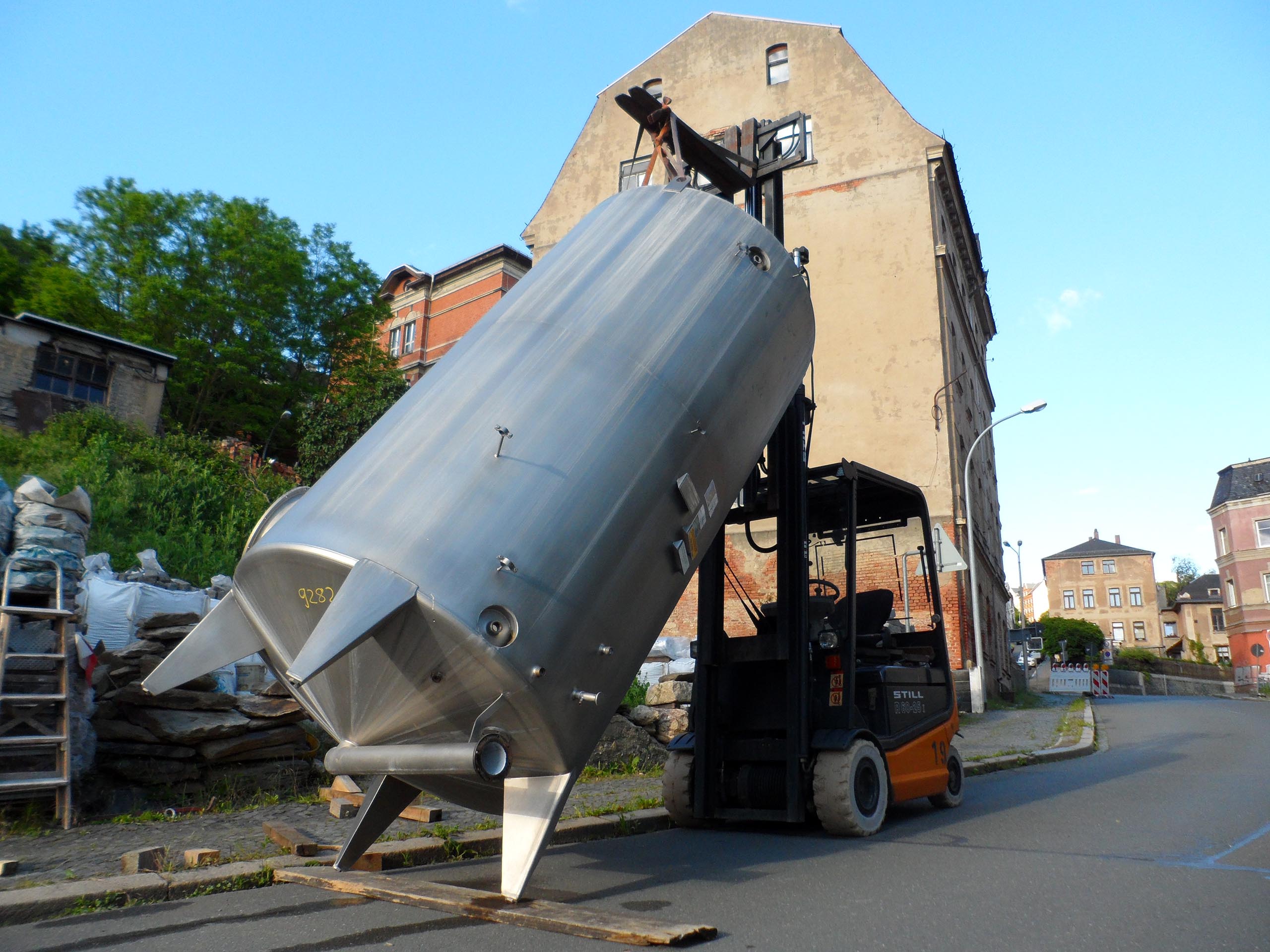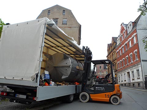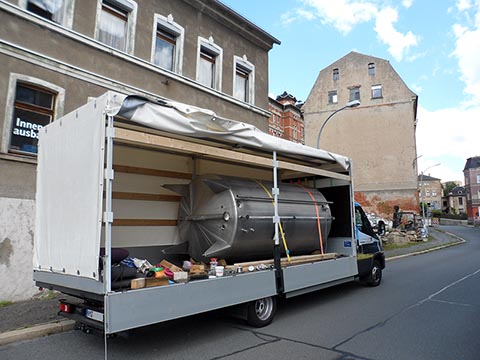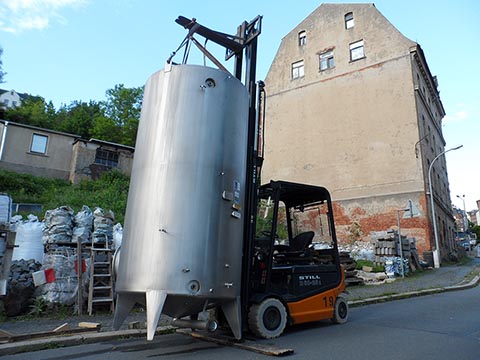 В техническом помещении на нижнем цокольном уровне будет установлен буферный резервуар для накопления тепла объёмом 5,5м³, который обеспечит эффективную работу системы отопления. Он двухстенный, из нержавеющей стали. До этого этот резервуар был использован в химической промышленности. Двустенная конструкция с изоляцией между слоями минимизирует теплопотери.