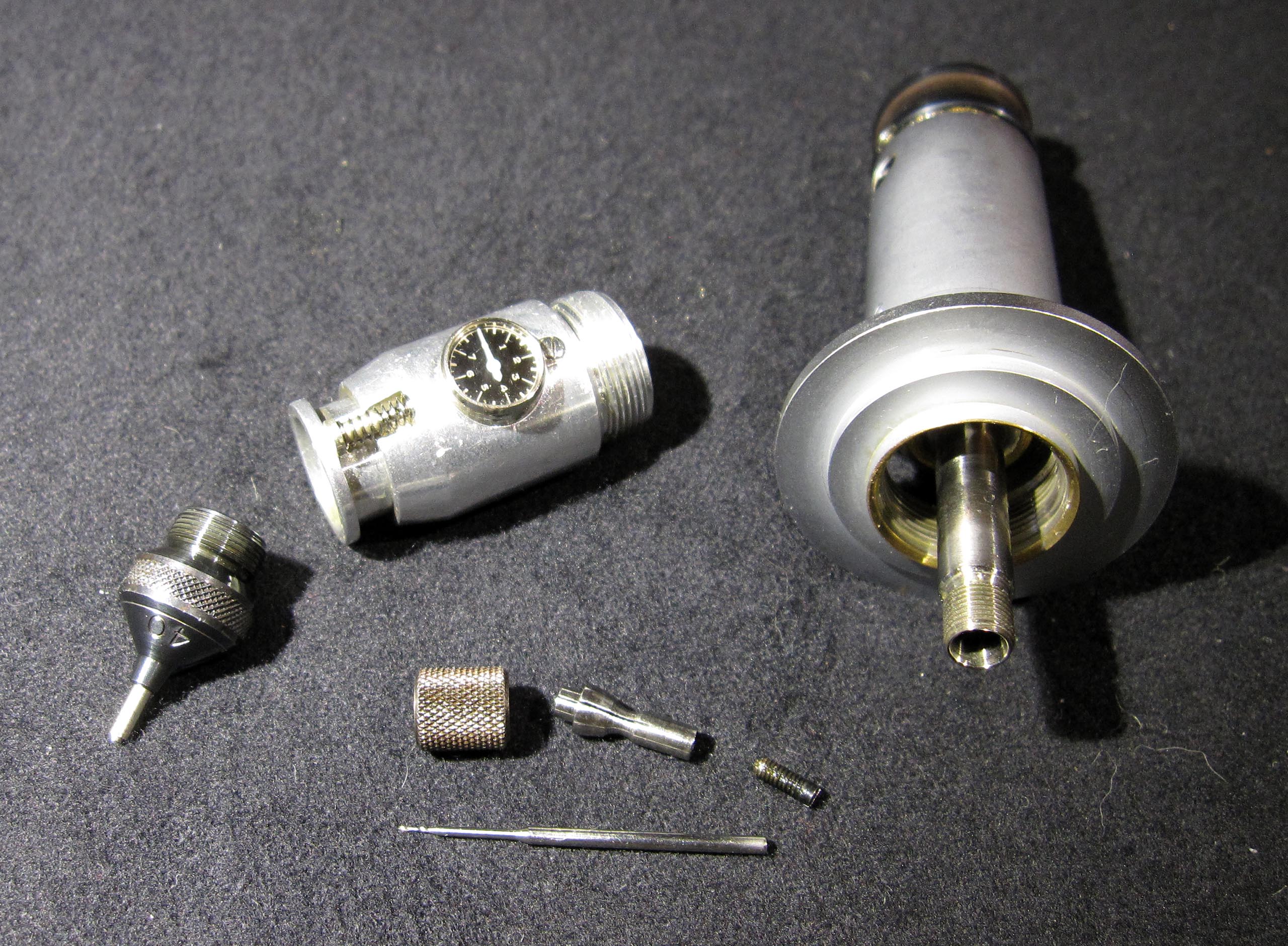 В основном детали прибора изготовлены из алюминия и латуни, это обосновано отсутствием магнетизма у этих металлов, необходимого для процесса измерения.