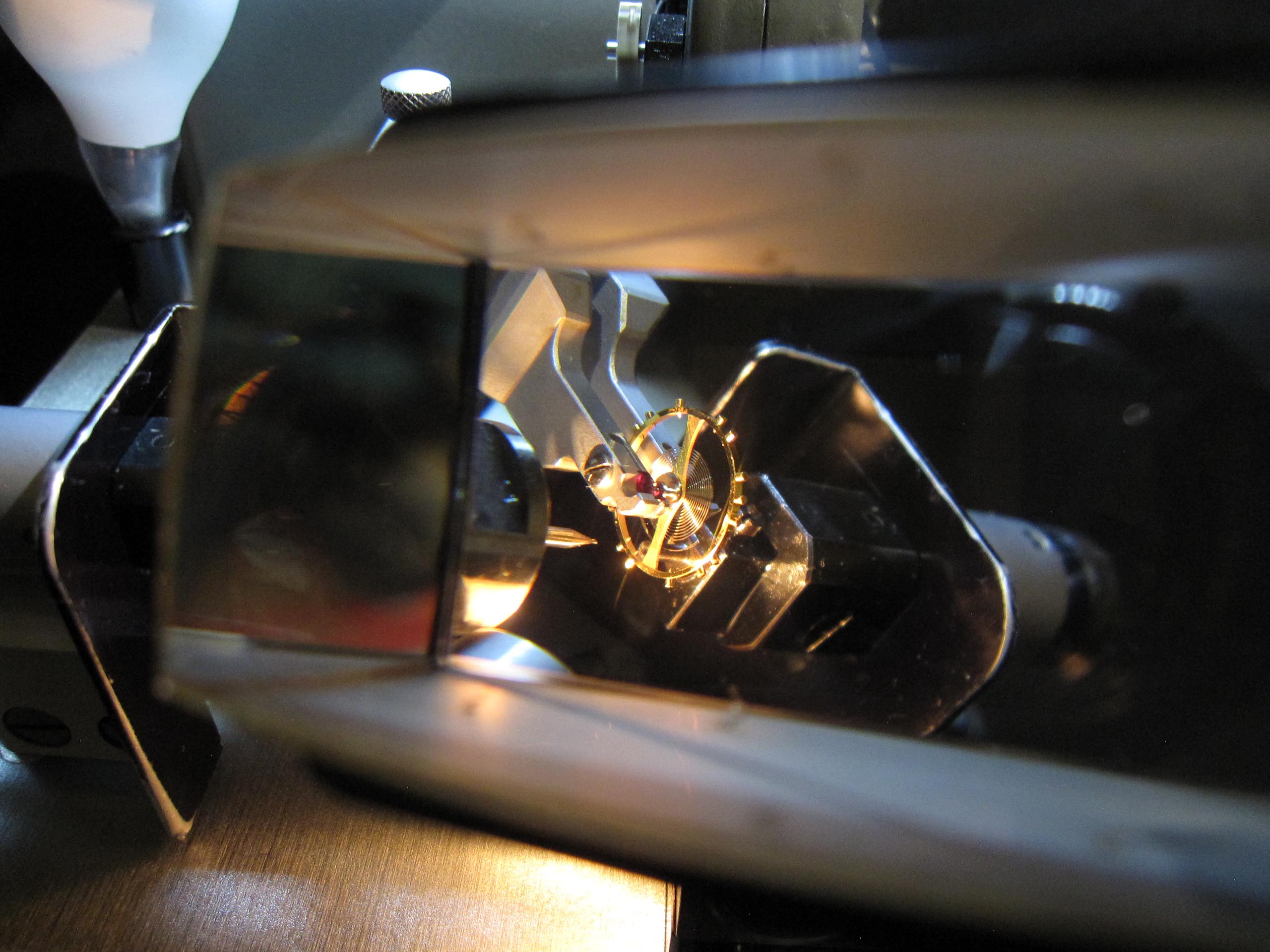 Выставление и регулировка аппарата очень многообразна. Так, например, можно точно отрегулировать положение сверла к стрелке измерительного прибора. Все важные детали оснащены шарикоподшипниками или подшипниками с рубинами, тем самым минимировано влияние силы тяжести на индикатор. С помощью луча света чёрный силуэт баланса проецируется на маленький экран. Это интересное дополнение к часовой лупе, которая всегда под рукой.