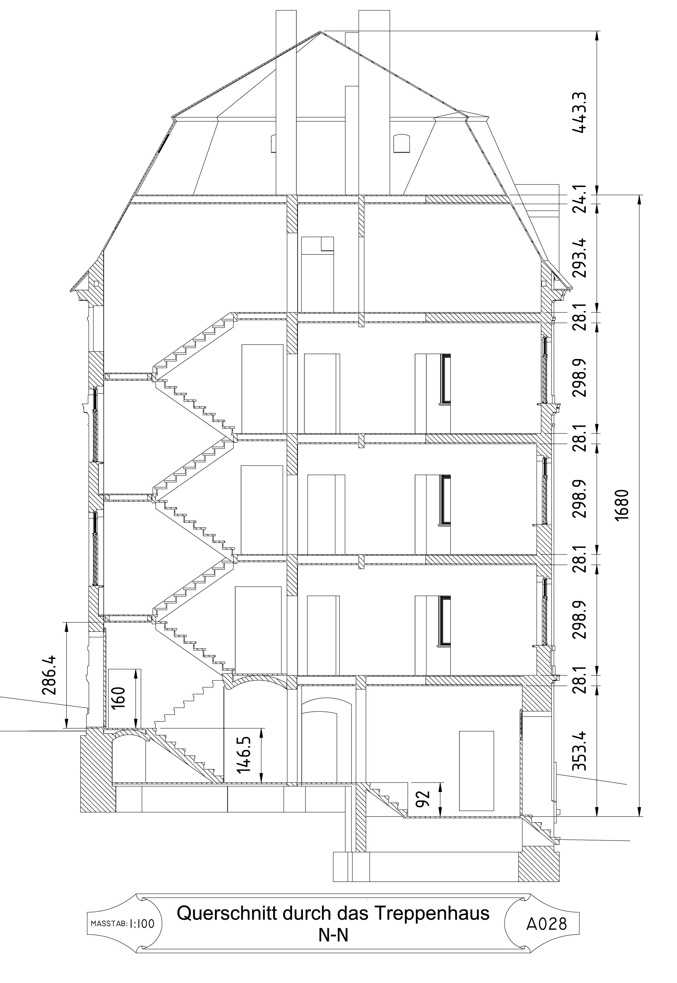 Die Vermessung der äußeren Abmessungen des Gebäudes und des Grundstücks erfolgte mit einem Baulaser. Dabei stellte sich heraus, dass die Gebäudeecken – mit Ausnahme des Treppenhauses – keine exakten 90°-Winkel bilden. Ich habe die Messungen mehrfach mit unterschiedlichen Methoden überprüft. Diese Winkel waren bereits ursprünglich im Fundament angelegt, und die präzise Arbeit der damaligen Bauhandwerker verdient großen Respekt.