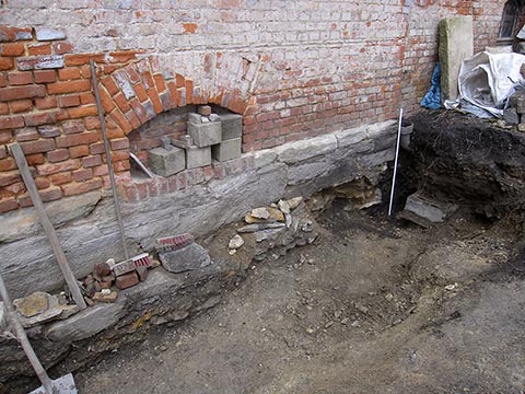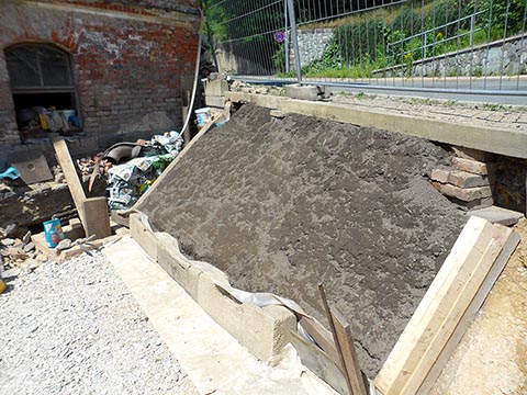 Nun wurde diese anderthalb Meter hohe Aufschüttung entfernt, das Gelände bis auf den Fels freigelegt und auf eine Ebene mit dem Gehweg gebracht.