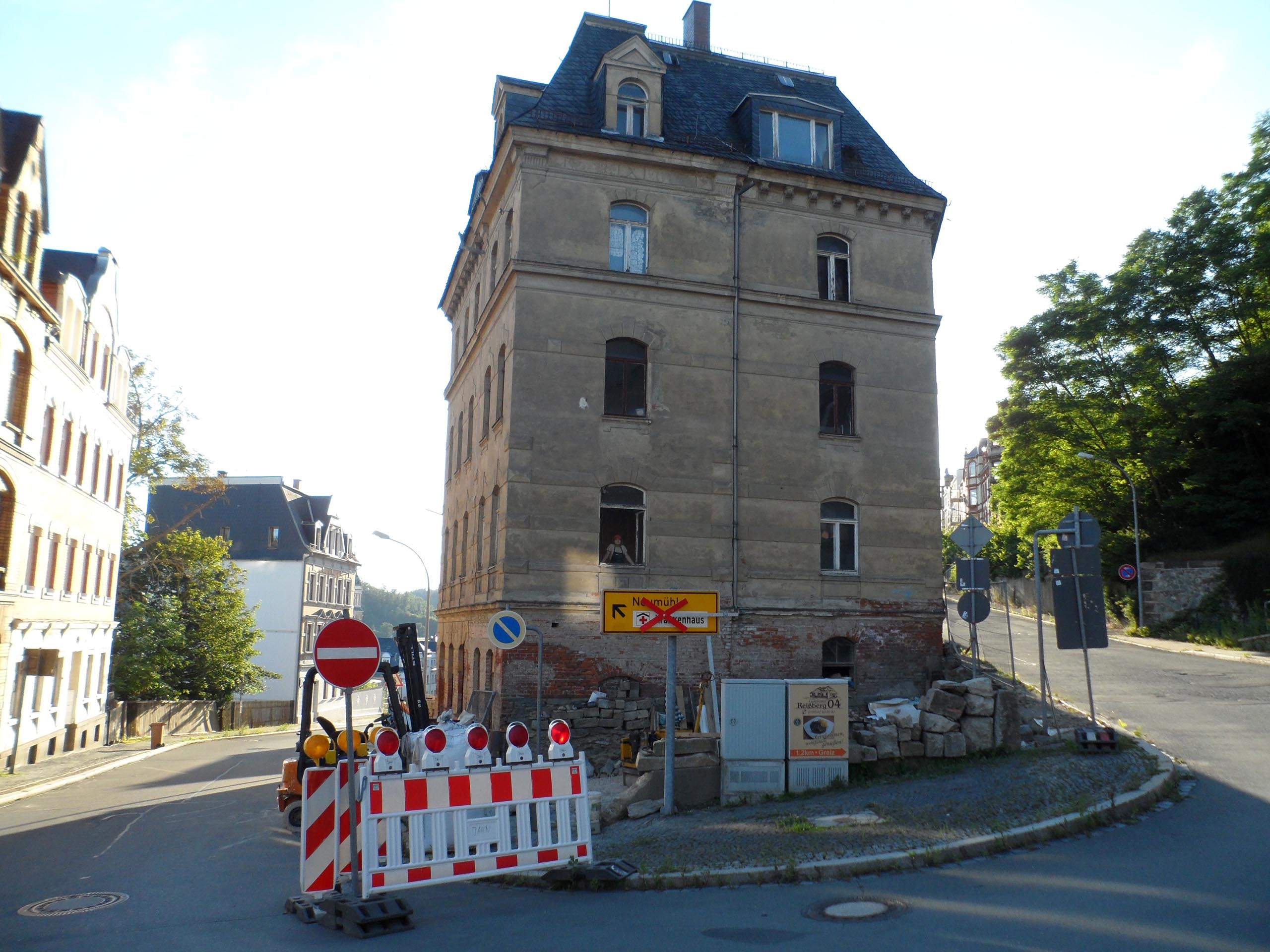 Das Haus von Victor Dietel in Greiz (Deutschland) wurde 1894 an einer Straßenkreuzung erbaut. Es ist nicht nur ein Eckhaus, sondern liegt exponiert zwischen zwei Straßen; drei seiner Wände sind Fassaden, und es ist von einer befahrenen Straße umgeben. Vor dem Haus befindet sich ein kleines, offenes Grundstück (75 m²). Allein die Lage vor diesem historischen Gebäude legt den Gedanken nahe, hier einen kulturellen Ort zu schaffen.