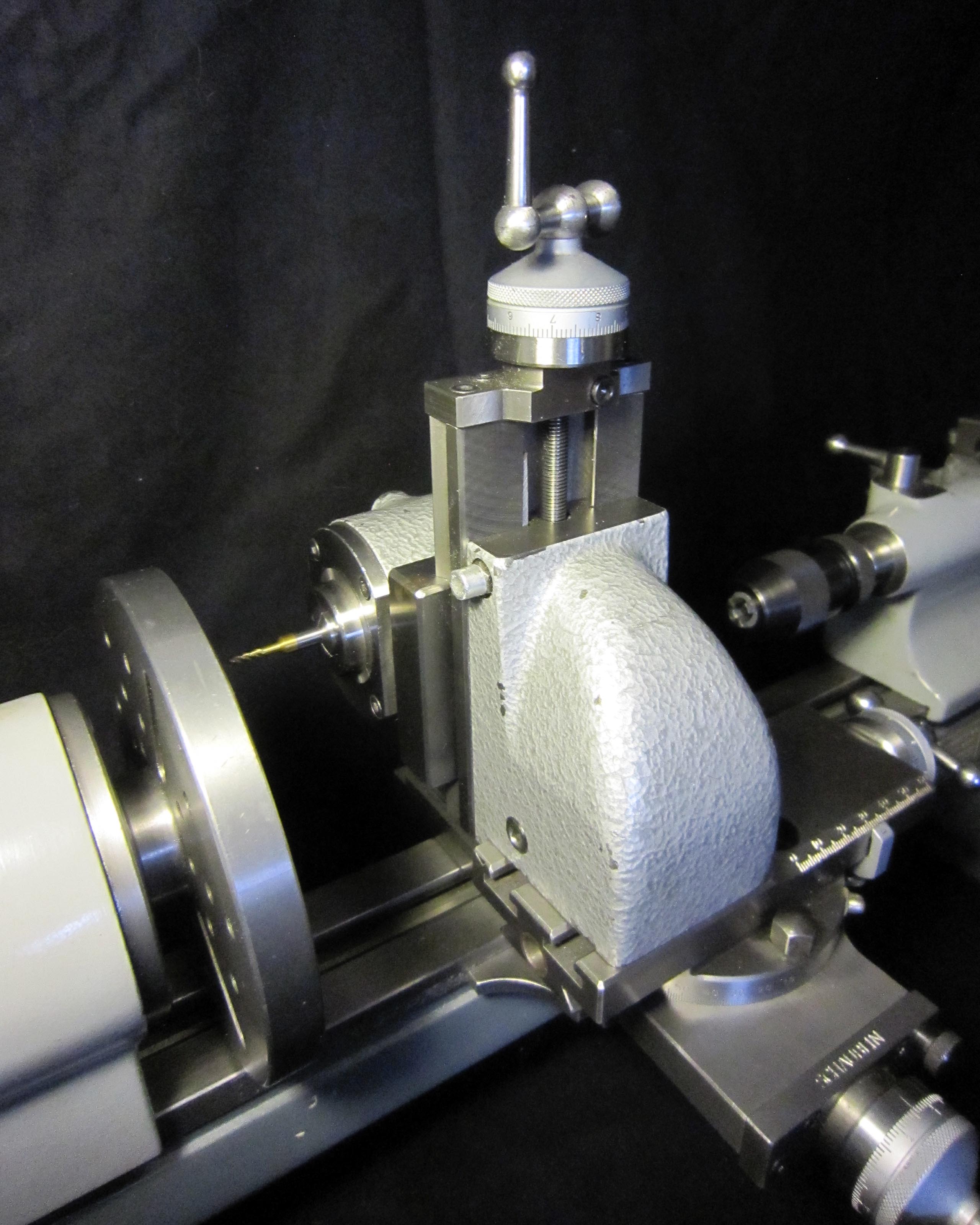 Ich besitze eine solche Werkzeugmacher-Drehbank, Baujahr 1962. Sie ist mit einem Riemenspanner und einer zweiten Motorscheibe ausgestattet. Dadurch ist es mir möglich, auf dieser Drehbank mit Höhensupport nicht nur Drehteile herzustellen, sondern auch zu fräsen. Dazu braucht man einen Kurbel-Kreuzsupport. Zum Spannen des Drehstahls benutze ich einen Schnellspann-Werkzeughalter von Tripan. Zum freihändigen Drehen dient mir eine Handauflage, die ich auf eine optimale Position einstellen kann.