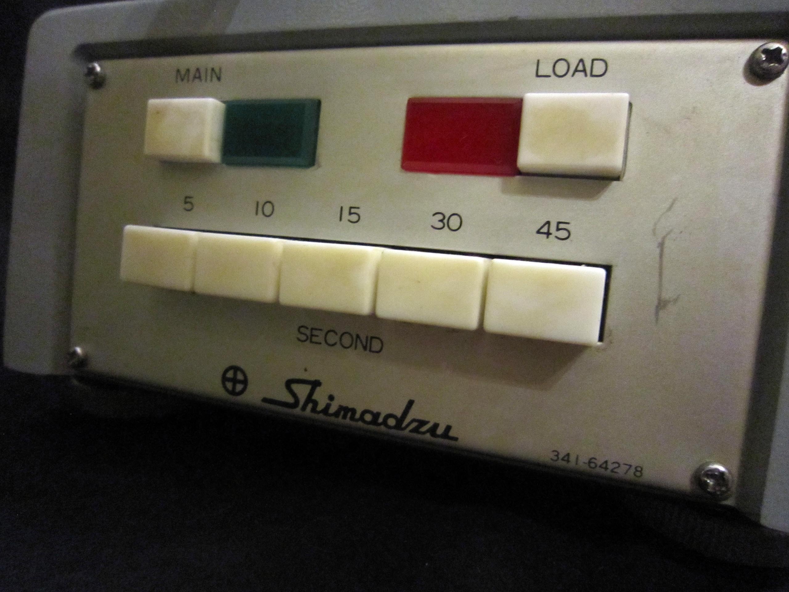 Die Kontaktzeit kann ebenfalls eingestellt werden. Es gibt fünf Tasten: 5 s, 10 s, 15 s, 30 s und 45 s. Anschließend wird das Gewicht angehoben, und über das Mikroskop, dessen Okular zwei Skalen hat, wird der Abdruck vermessen. Durch Messung der Diagonalen des Pyramidenabdrucks wird der Härtewert ermittelt.