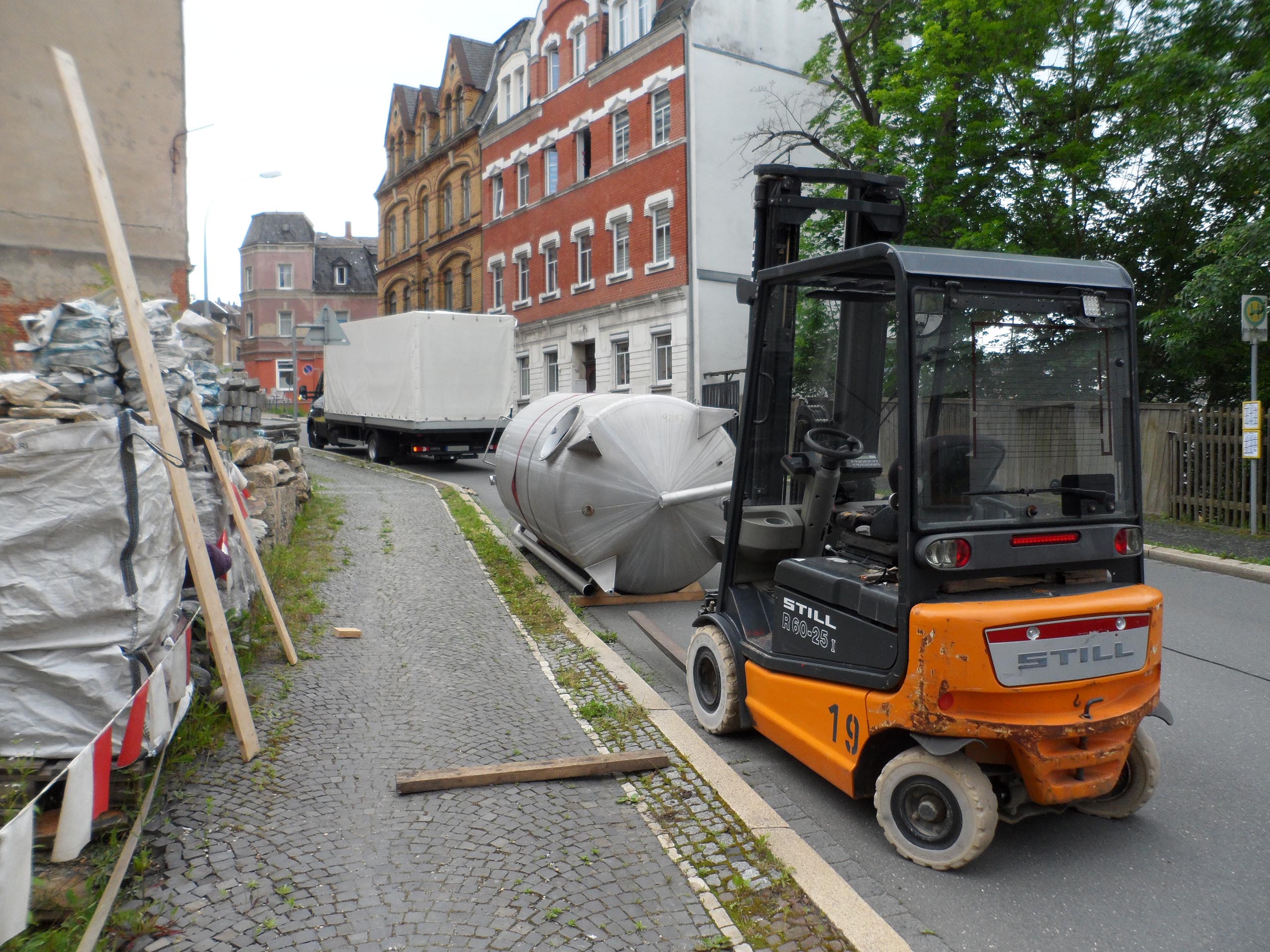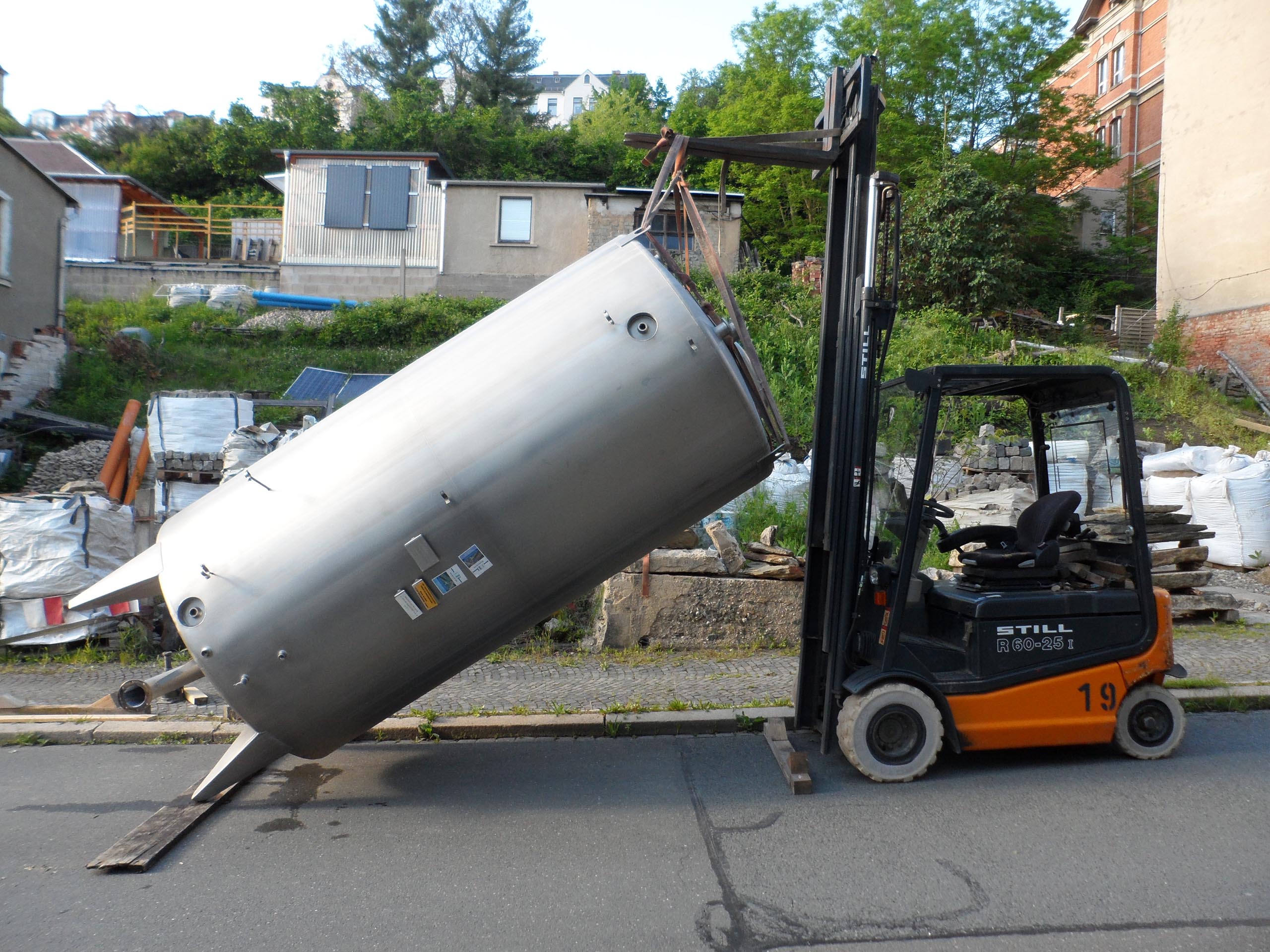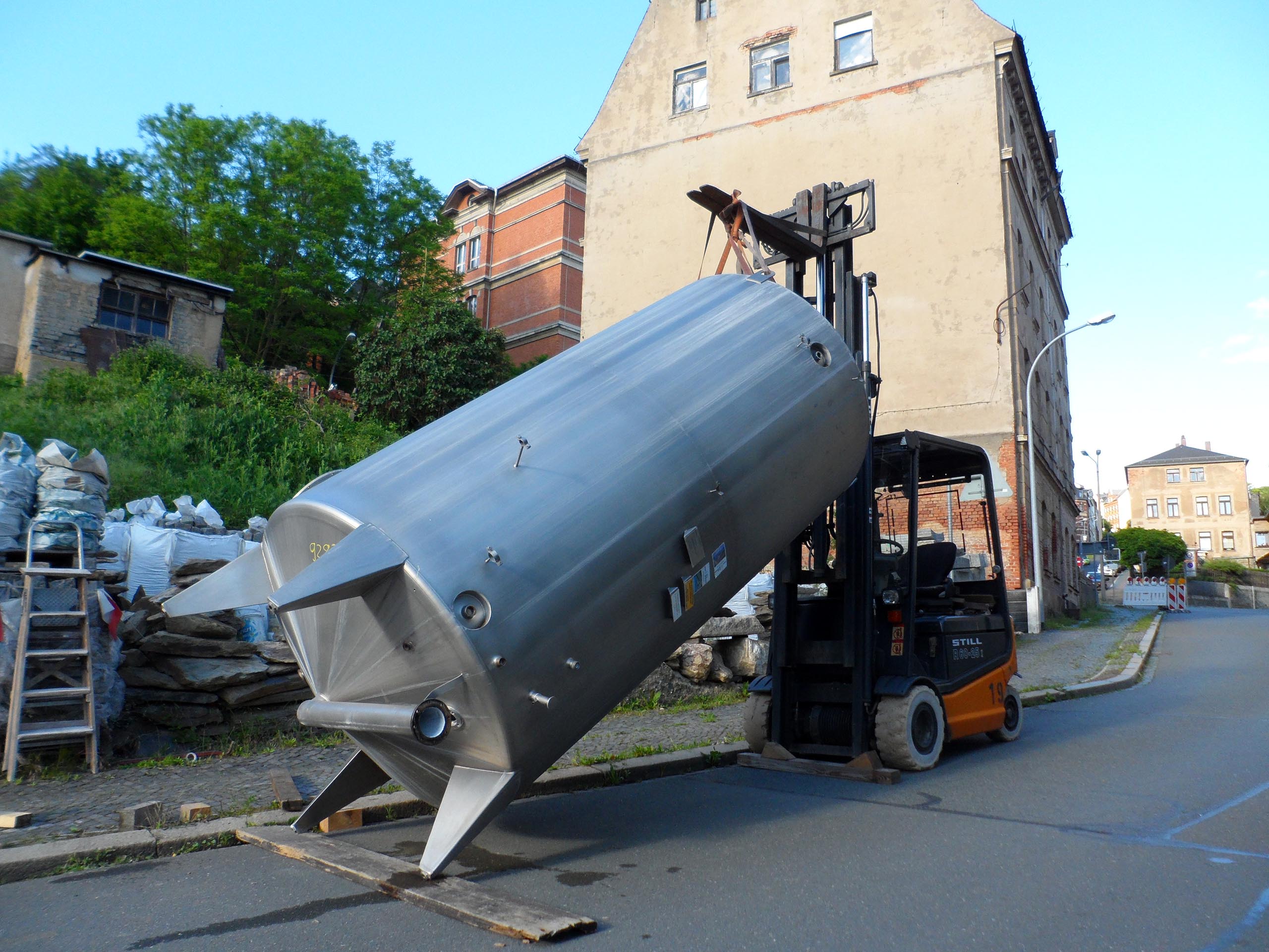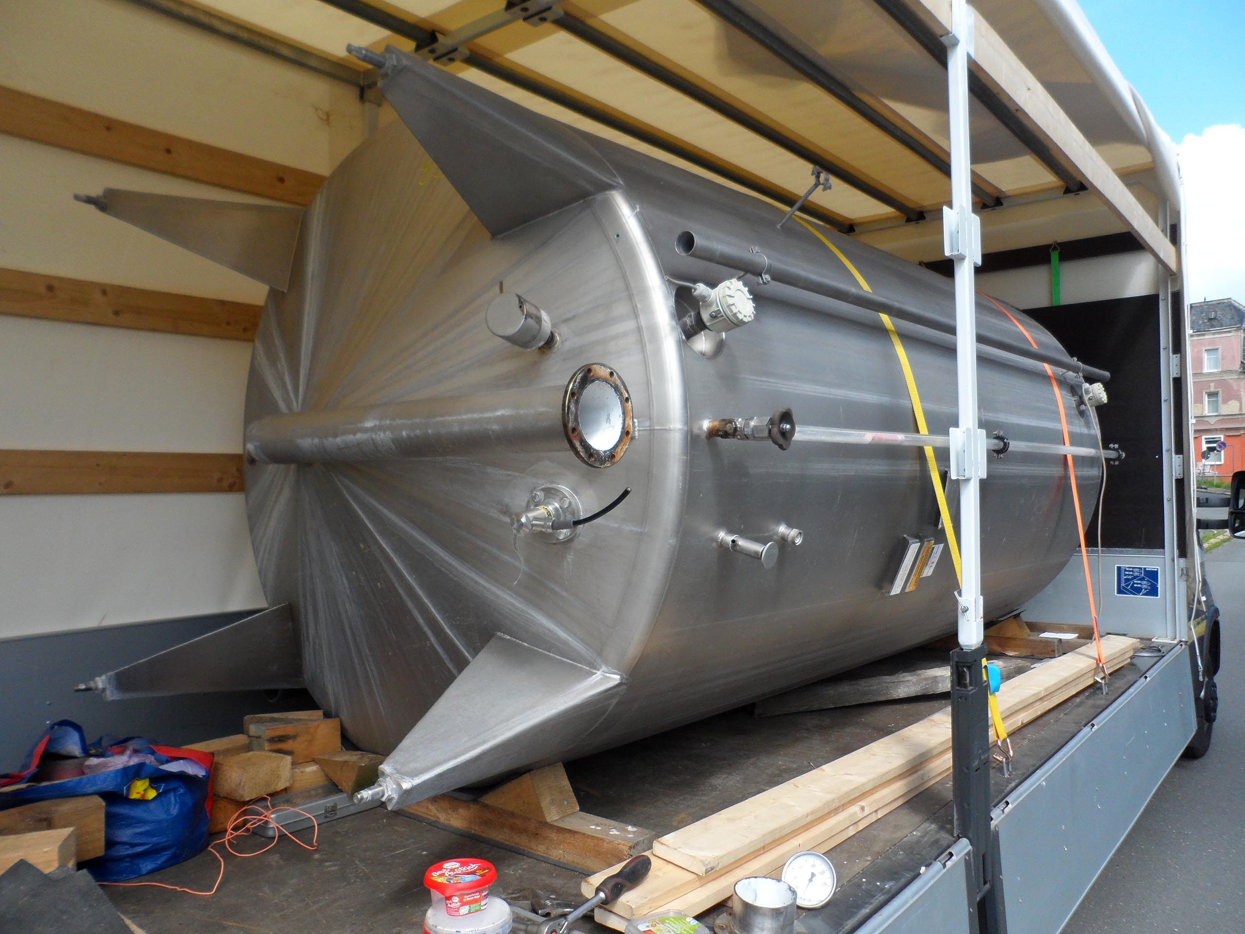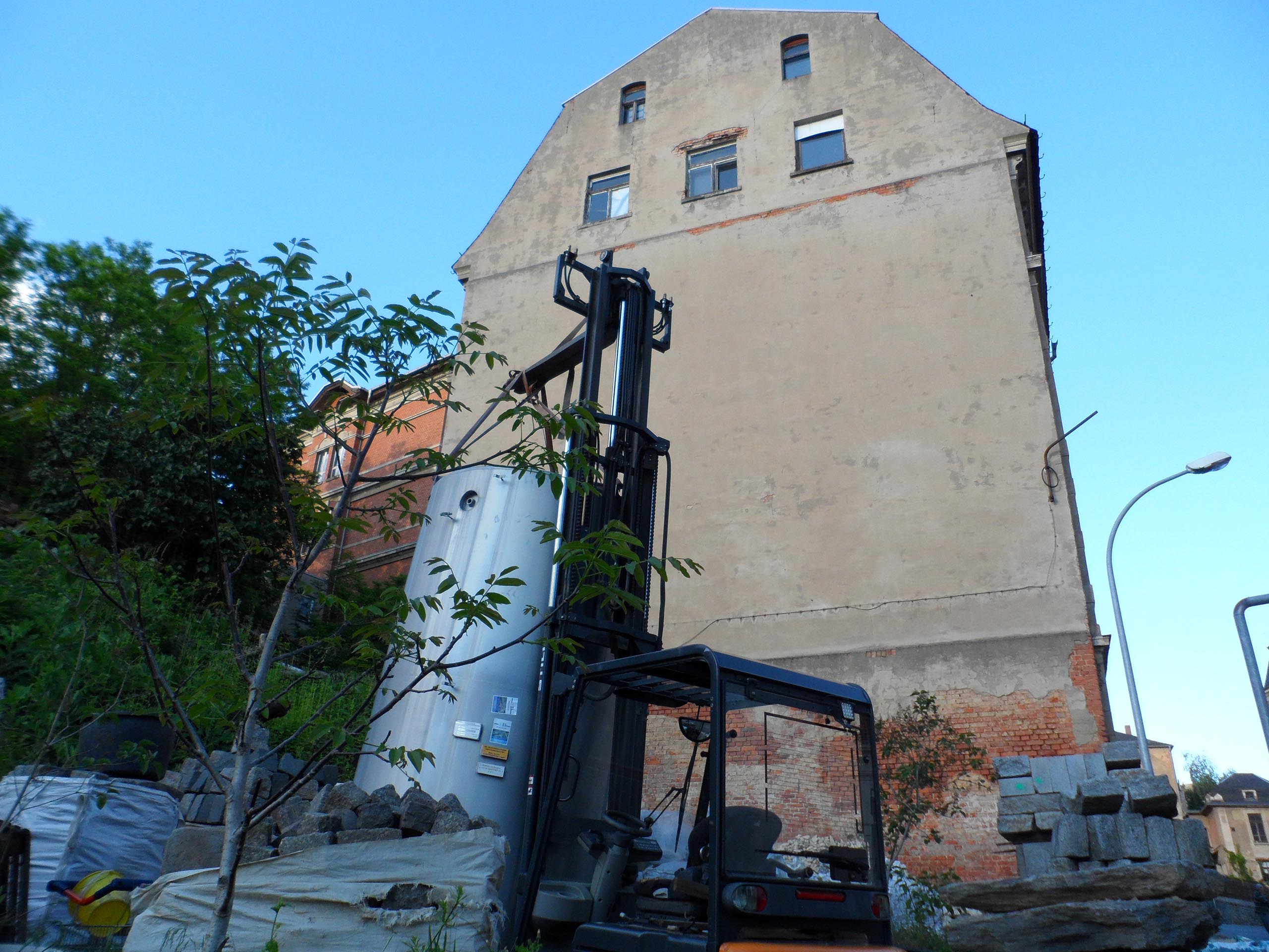В техническом помещении на нижнем цокольном уровне будет установлен буферный резервуар для накопления тепла объёмом 5,5м³, который обеспечит эффективную работу системы отопления. Он двустенный, из нержавеющей стали. До этого этот резервуар был использован в химической промышленности. Двустенная конструкция с изоляцией между слоями минимизирует теплопотери.