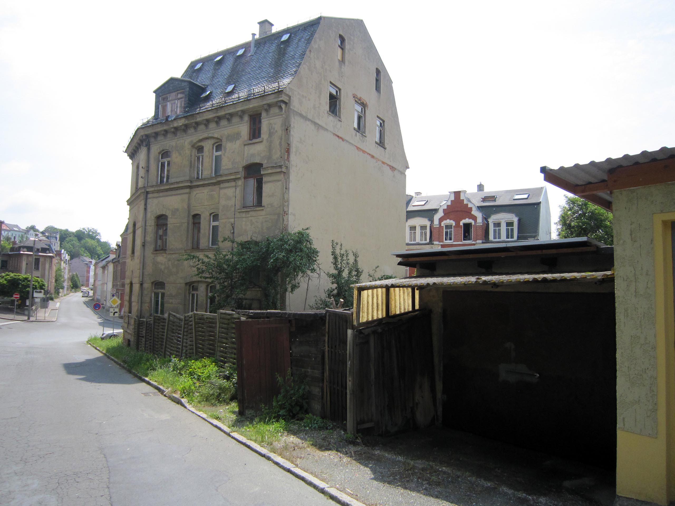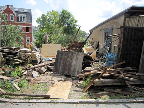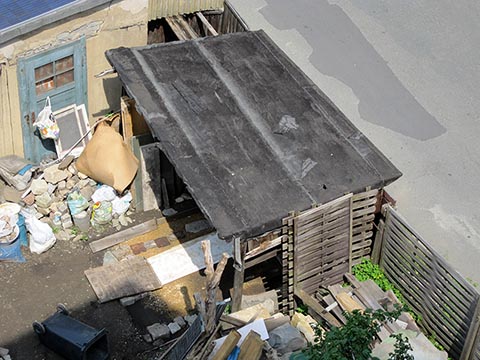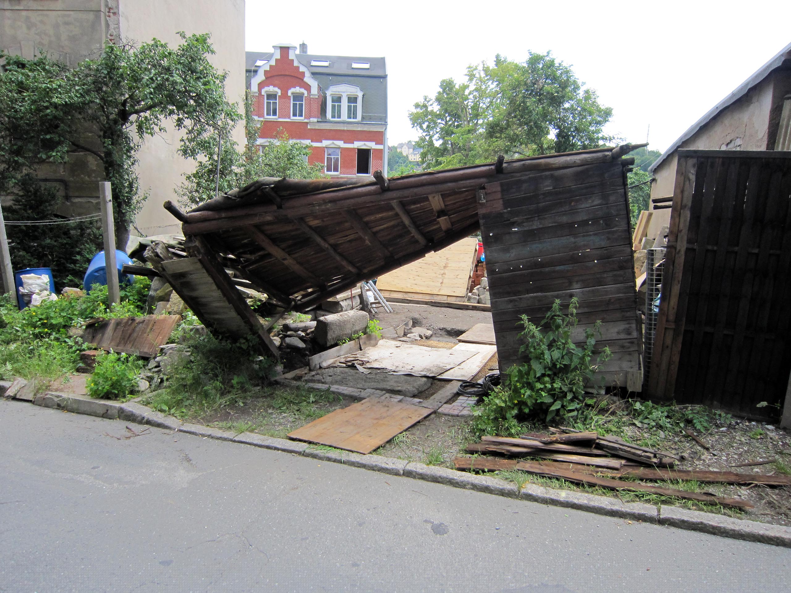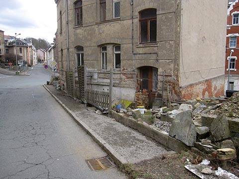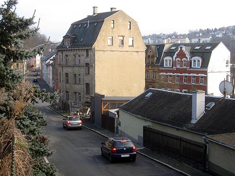 Значит, надо строить новую, закрытую, надёжную, пожаростойкую лестницу. В конструкции такой лестницы противопожарная стена больше не должна заканчиваться у наклонной крыши, а должна максимально выступать над крышей, таким образом, крыши соединяются только на чердаке. В случае пожара это нужно для уменьшения распространения огня через наклонную крышу на лестничную клетку.