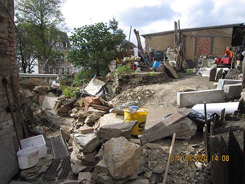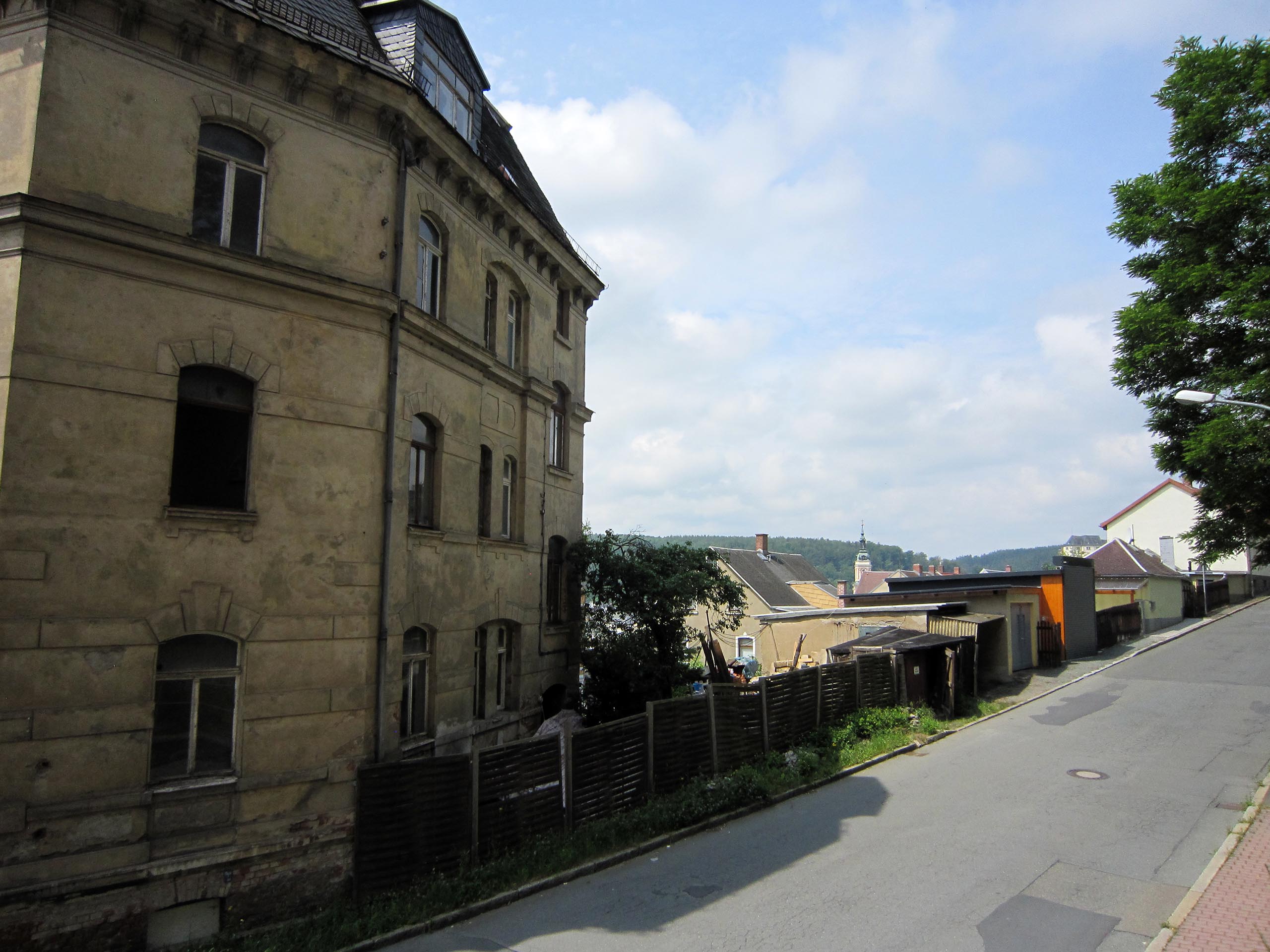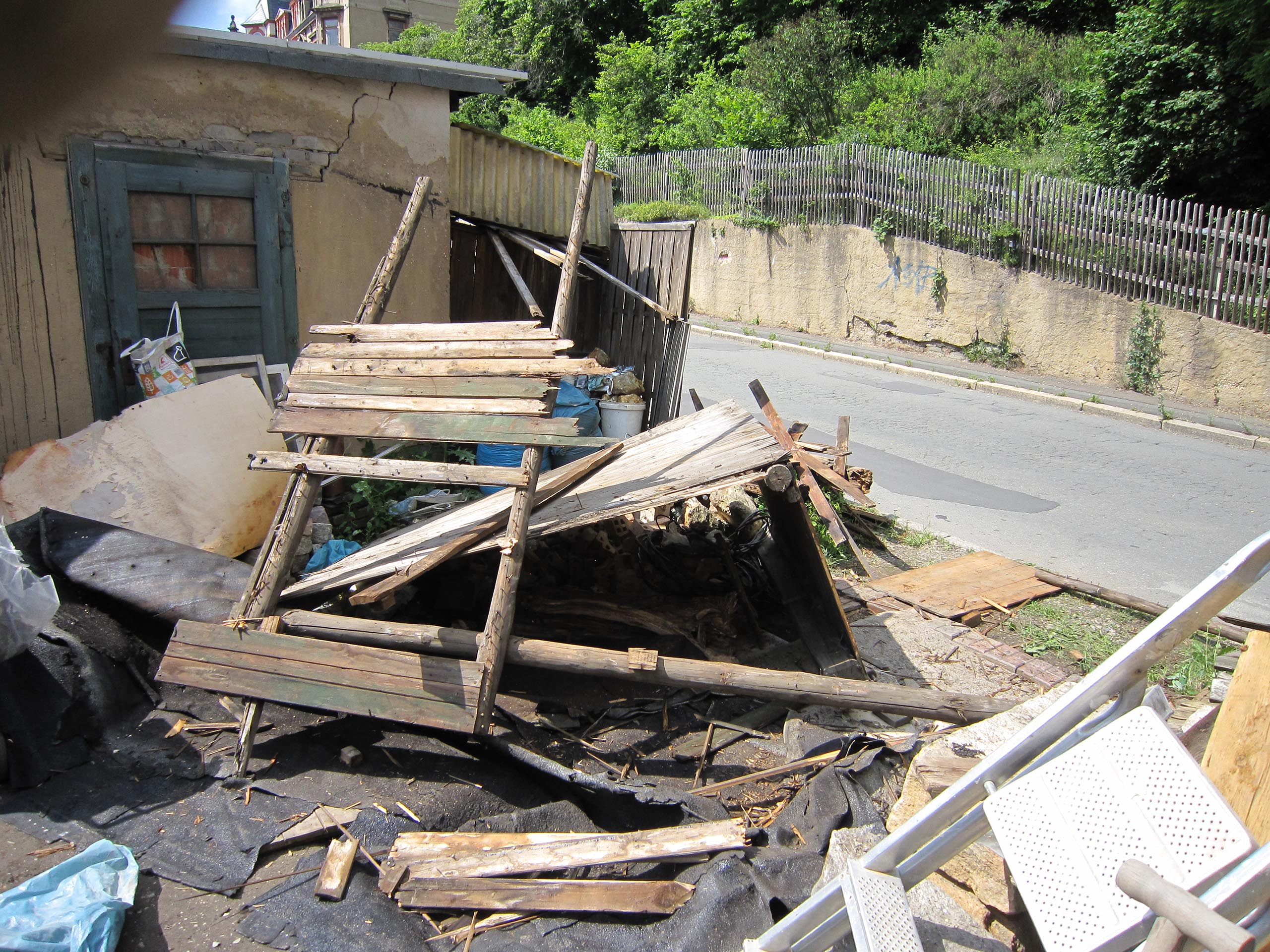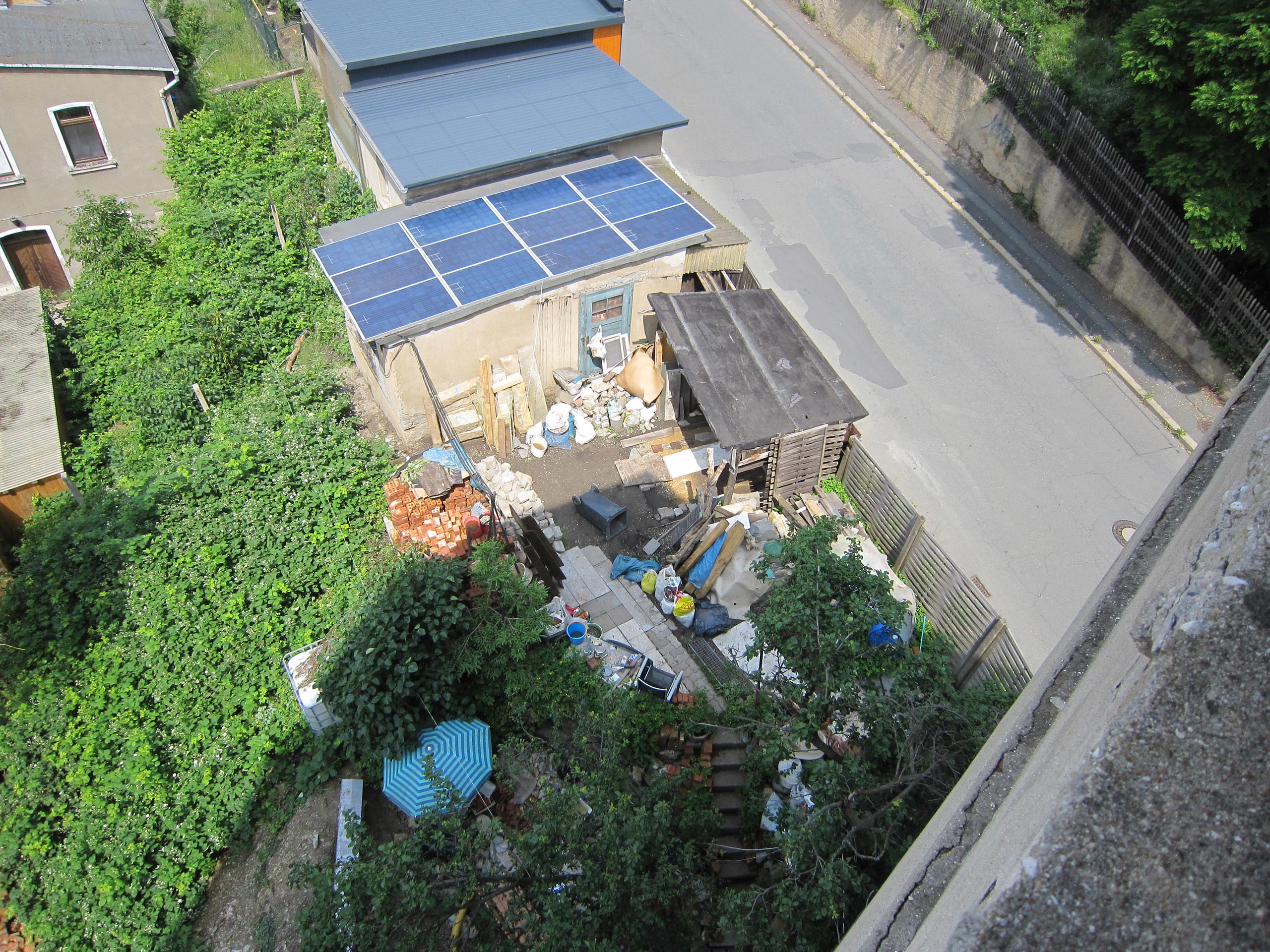 Значит, надо строить новую, закрытую, надёжную, пожаростойкую лестницу. В конструкции такой лестницы противопожарная стена больше не должна заканчиваться у наклонной крыши, а должна максимально выступать над крышей, таким образом, крыши соединяются только на чердаке. В случае пожара это нужно для уменьшения распространения огня через наклонную крышу на лестничную клетку.